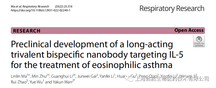 近期,由30116金沙js9(中国)生物主导开发的长效IL5纳米抗体,可用于治疗嗜酸性粒细胞性相关疾病,包括嗜酸性哮喘(EOS-Asthma)、高嗜酸性粒细胞综合征(HES)和嗜酸性肉芽性多血管炎(EGPA)等。相关研究成果发表于《Respiratory Research》杂志,题为“Preclinical development of a long-acting trivalent bispecifc nanobody targeting IL-5 for the treatment of eosinophilic asthma”(IF=7.162)。本文通讯作者为上海30116金沙js9(中国)生物万亚坤博士。