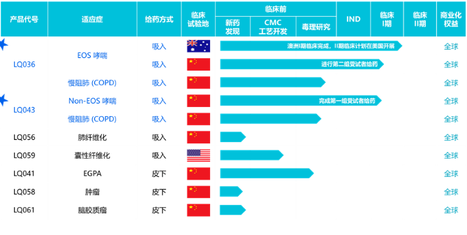 30116金沙js9(中国)生物的研发管线中,还包括治疗肺纤维化的LQ056和治疗囊性纤维化的LQ059,同样采用吸入给药。